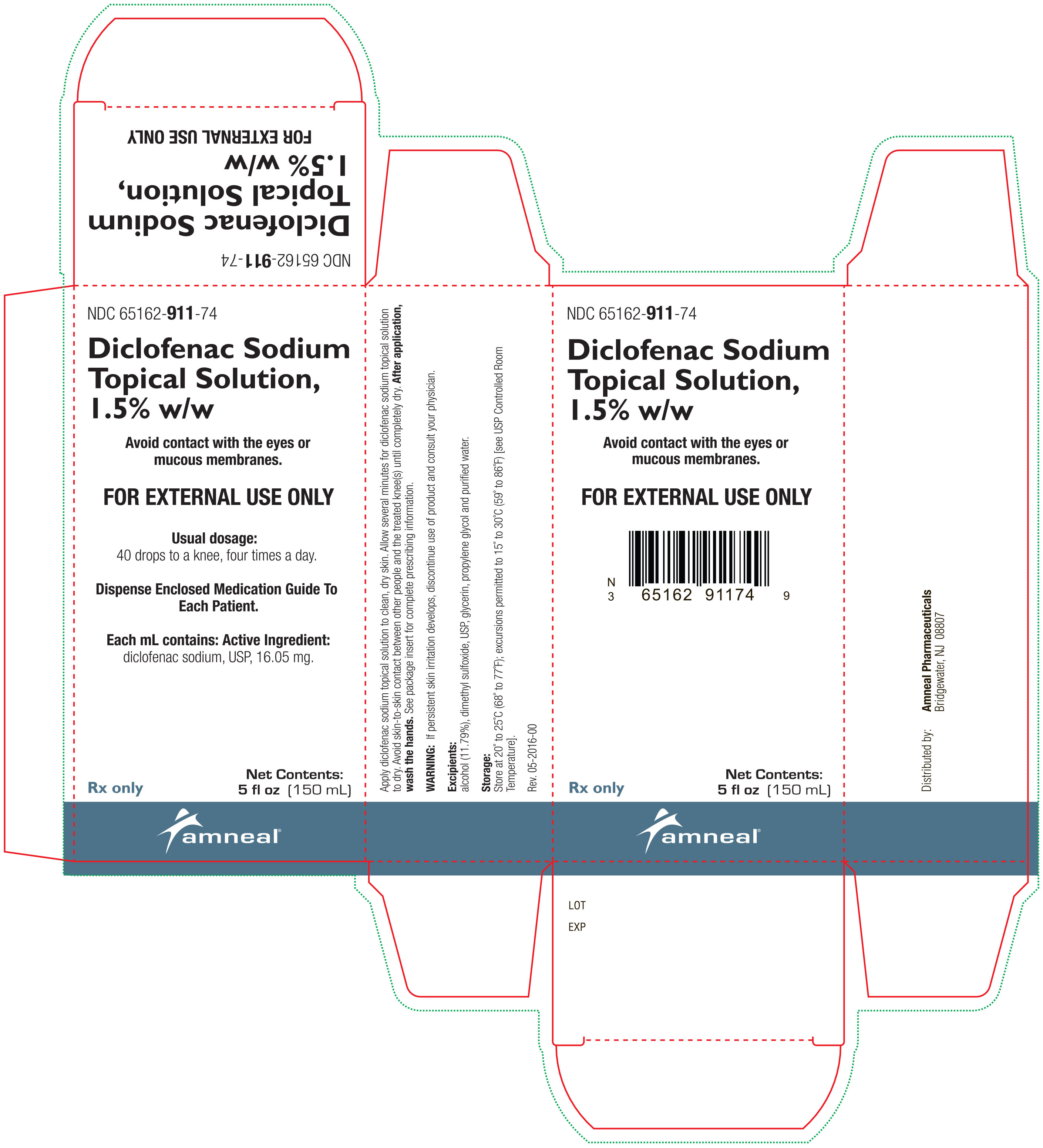 Diclofenac sodium topical solution 1.5% w/w is supplied as a clear, colorless to faintly pink-orange solution containing 16.05 mg of diclofenac sodium per 1 mL of solution, in a white high density polyethylene bottle with a white low-density dropper cap. It is available as follows: