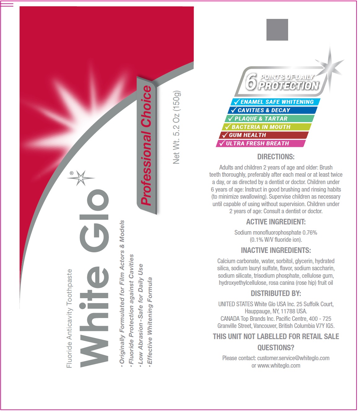 White Glo Professional Choice Fluoride Anticavity by is a Otc medication manufactured, distributed, or labeled by White Glo USA Inc. Drug facts, warnings, and ingredients follow.