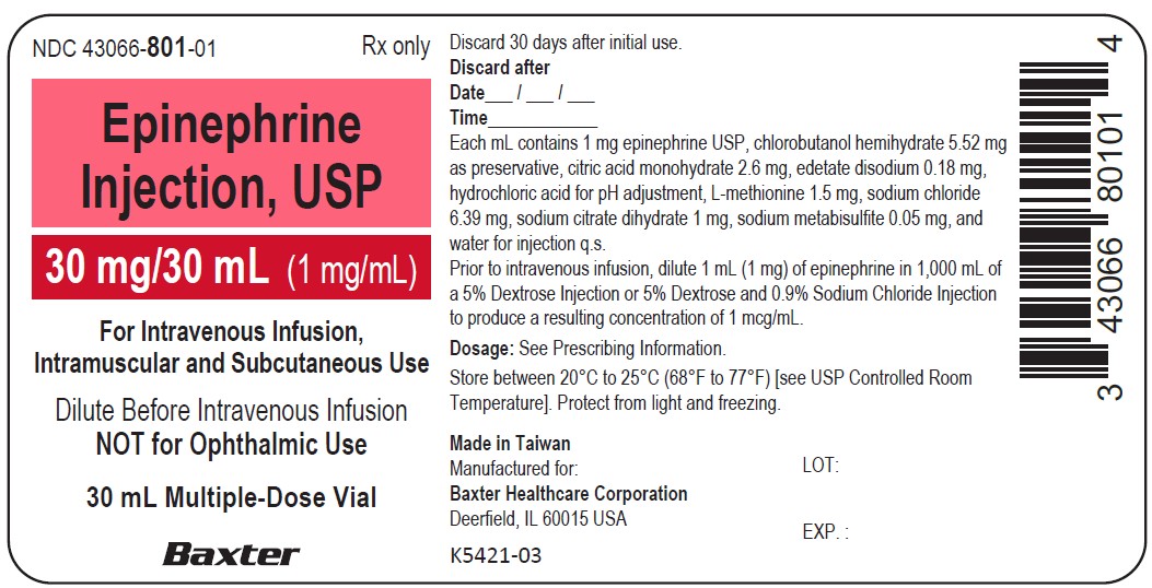 Epinephrine Injection, USP, 30 mg/30 mL (1 mg/mL) multiple-dose vial: