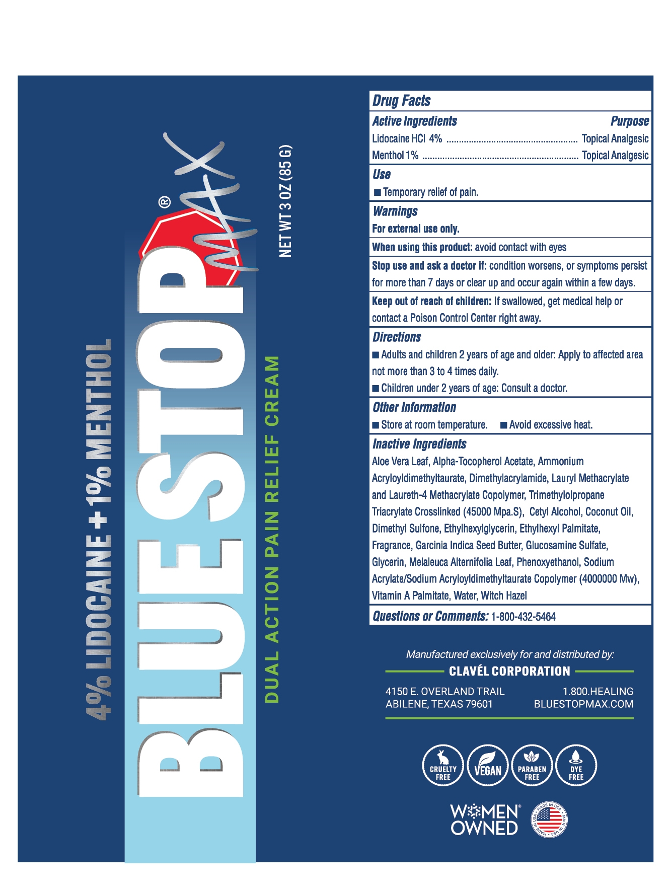 BlueStop Max by is a Otc medication manufactured, distributed, or labeled by Clavel Corporation, TAKA USA dba Cosmetic Innovations. Drug facts, warnings, and ingredients follow.