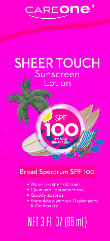 Sheer Touch Sunscreen SPF 100 by is a Otc medication manufactured, distributed, or labeled by Retail Business Services, LLC, Nice-Pak Products, LLC. Drug facts, warnings, and ingredients follow.