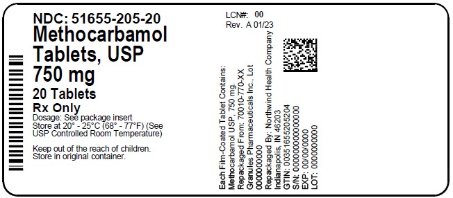 Bottles of 20 tablets NDC: 51655-205-20