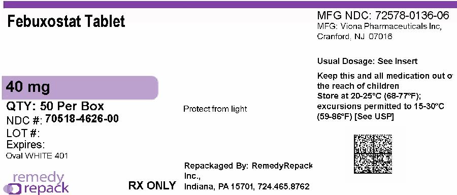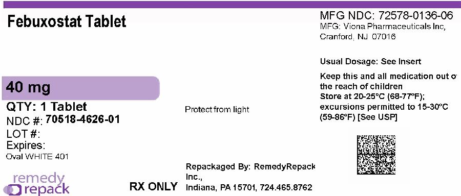 Febuxostat tablet is a prescription medicine called a xanthine oxidase (XO) inhibitor used to lower blood uric acid levels in adult patients with gout when allopurinol has not worked well enough or when allopurinol is not right for you. Febuxostat tablets are not for use in people who do not have symptoms of high blood uric acid levels.