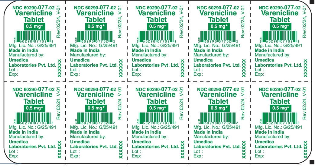 Varenicline Tablets 0.5 mg - NDC: 60290-077-02 - 60's Carton Pack