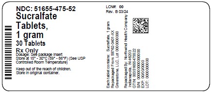 Sucralfate 1 g tablets are supplied in bottles of 30 (NDC: 51655-475-52) tablets. Light pink, scored, oblong tablets are embossed with CARAFATE on one side and 1712 on the other.