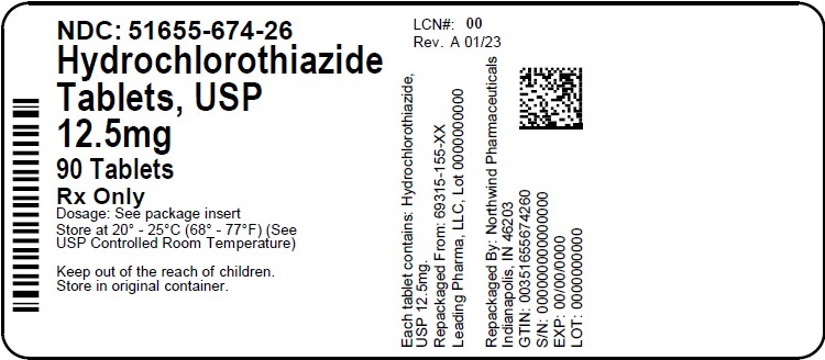 Hydrochlorothiazide tablets USP, 12.5 mg are available as peach color, round, flat face, beveled edge tablets, debossed “EP” above and “155” below on one side, and plain on the other side containing 12.5 mg of hydrochlorothiazide USP, packaged in bottles of 30 (NDC: 51655-674-52) bottles of 90 (NDC: 51655-674-26) tablets.