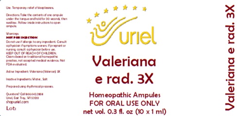 Valeriana e rad. 3 by is a Homeopathic medication manufactured, distributed, or labeled by Uriel Pharmacy Inc.. Drug facts, warnings, and ingredients follow.