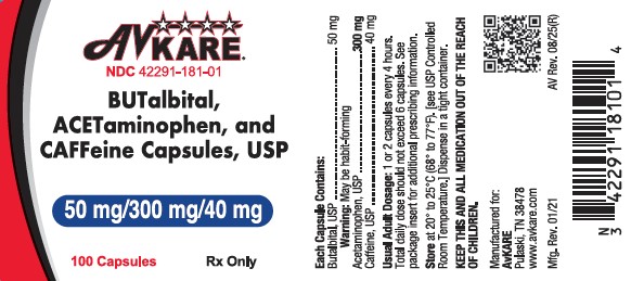 " in black. The capsules are supplied in bottles of 100 capsules (NDC: 42291-181-01).