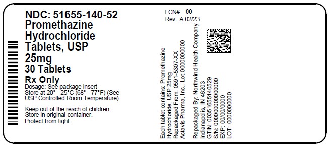 Promethazine Hydrochloride Tablets USP, 25 mg are scored, round, white tablets imprinted DAN DAN and 5307 supplied in bottles of 10 (51655-140-53) and 30 (51655-140-52) .