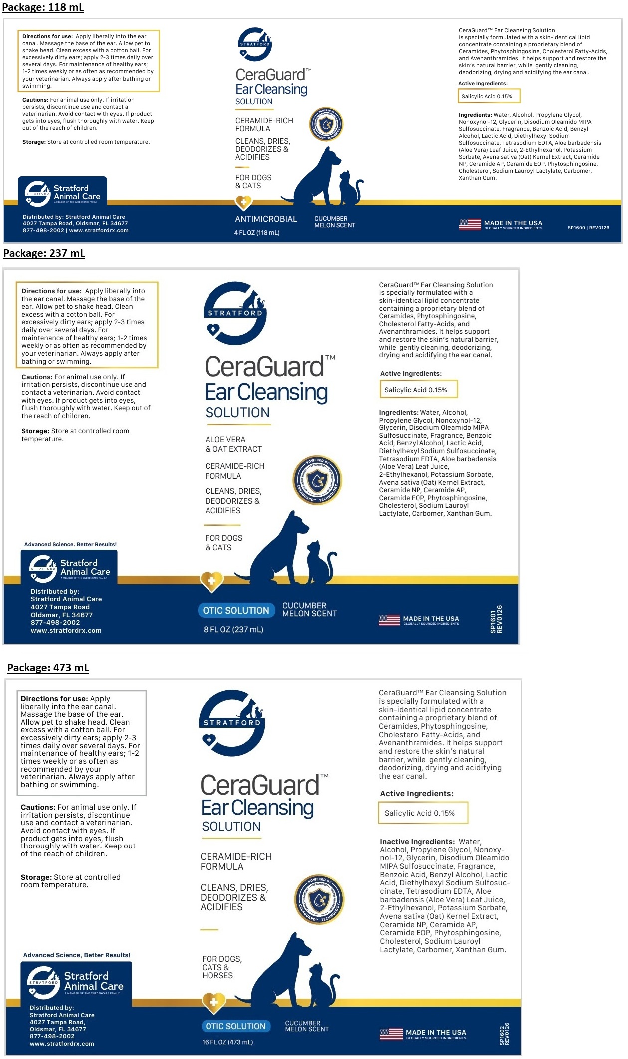 STRATFORD CeraGuard Ear Cleansing by is a Animal medication manufactured, distributed, or labeled by Stratford Care Usa, Inc.. Drug facts, warnings, and ingredients follow.