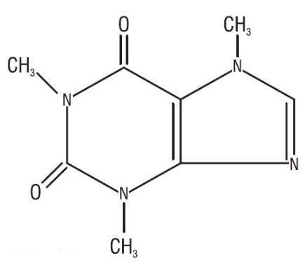 Caffeine (1,3,7-trimethylxanthine), a bitter, white powder or white-glistening needles, is a central nervous system stimulant. It has the following structural formula: