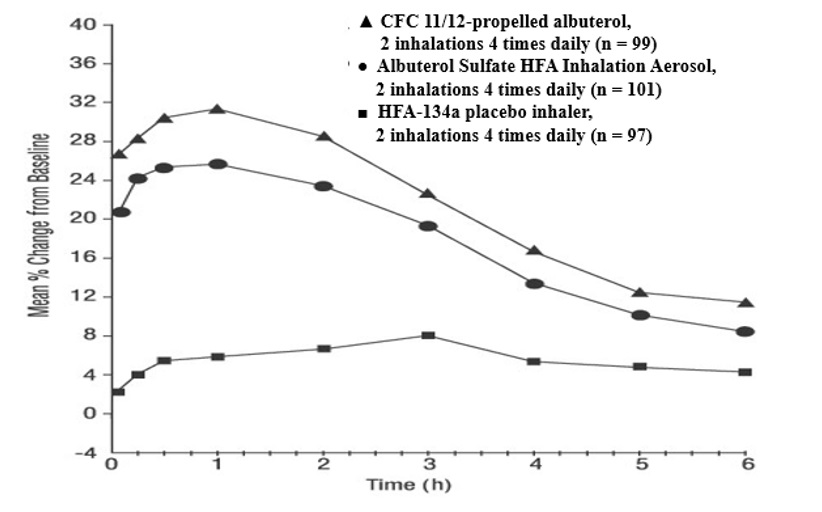 The two 12-week, randomized, double-blind trials in 610 adult and adolescent subjects with asthma that compared albuterol sulfate inhalation aerosol, a CFC 11/12-propelled albuterol inhaler, and an HFA-134a placebo inhaler. Overall, the incidence and nature of the adverse reactions reported for albuterol sulfate inhalation aerosol and a CFC 11/12-propelled albuterol inhaler were comparable. Table 1 lists the incidence of all adverse reactions (whether considered by the investigator to be related or unrelated to drug) from these trials that occurred at a rate of ≥3% in the group treated with albuterol sulfate inhalation aerosol and more frequently in the group treated with albuterol sulfate inhalation aerosol than in the HFA-134a placebo inhaler group.