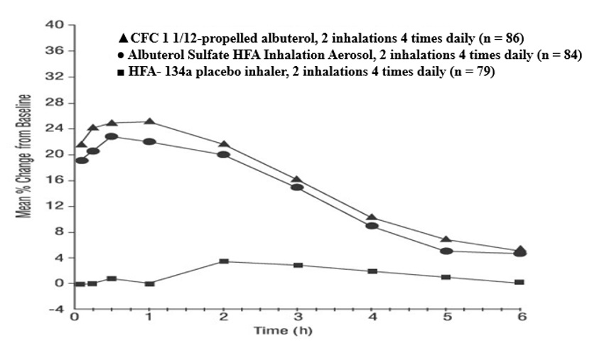 The safety data described below reflects exposure to albuterol sulfate in 248 subjects treated with albuterol sulfate inhalation aerosol in 3 placebo-controlled clinical trials of 2 to 12 weeks’ duration. The data from adults and adolescents is based upon 2 clinical trials in which 202 subjects with asthma aged 12 years and older were treated with albuterol sulfate inhalation aerosol 2 inhalations 4 times daily for 12 weeks’ duration. The adult/adolescent population was 92 female, 110 male and 163 white, 19 black, 18 Hispanic, 2 other. The data from pediatric subjects are based upon 1 clinical trial in which 46 subjects with asthma aged 4 to 11 years were treated with albuterol sulfate inhalation aerosol 2 inhalations 4 times daily for 2 weeks’ duration. The population was 21 female, 25 male and 25 white, 17 black, 3 Hispanic, 1 other.