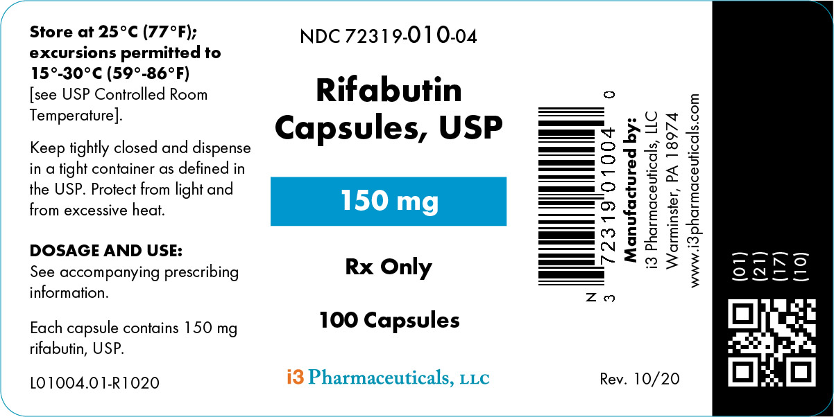 Rifabutin Capsules, USP are supplied as hard gelatin capsules having an opaque reddish-brown cap and body, imprinted with “i3 10” in white ink on the cap and body, each containing 150 mg of rifabutin, USP.