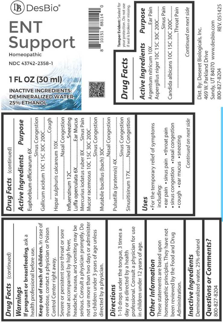 ENT Support by is a Homeopathic medication manufactured, distributed, or labeled by Deseret Biologicals, Inc., Apotheca Company. Drug facts, warnings, and ingredients follow.
