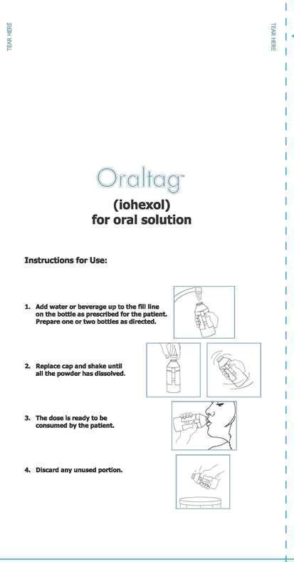 Oraltag (iohexol) is a radiographic contrast agent for oral solution. Oraltag is provided as a nonsterile white to off-white powder with 9.7 g iohexol (equivalent to 4.5 g of carbon bound iodine) in a 20-ounce beverage bottle. Each bottle is individually sealed in a foil laminated pouch. Oraltag consists of 100 percent iohexol and contains no excipients.