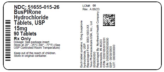 Each tablets contains 15 mg of buspirone hydrochloride